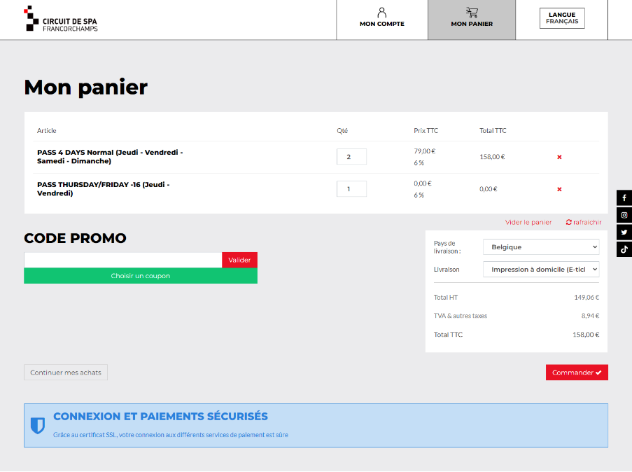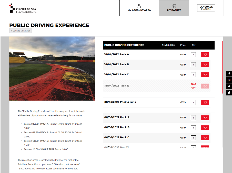 Exemple - Billetterie du Circuit de Spa-Fancorchamps