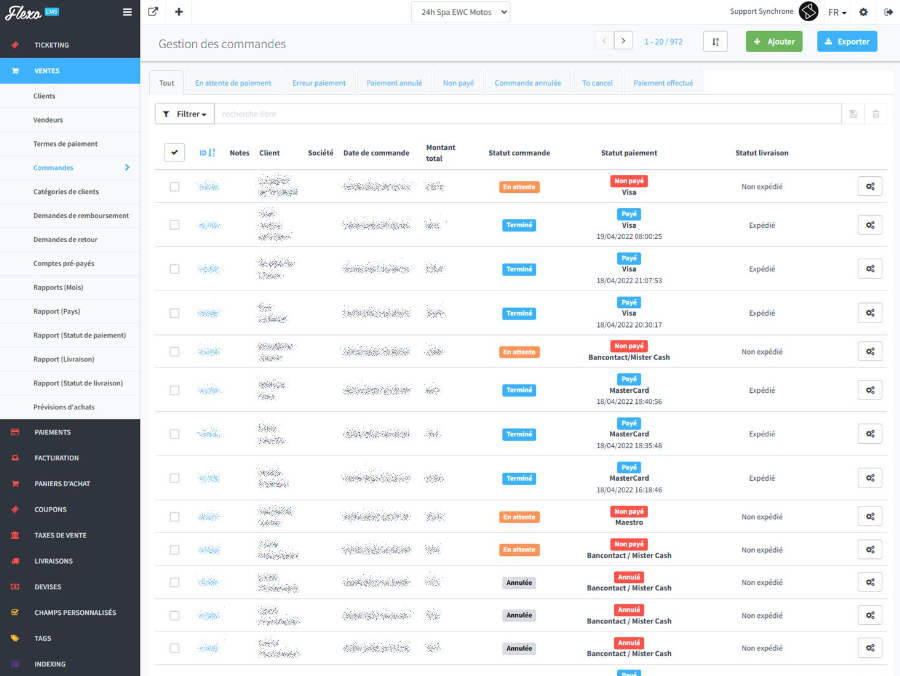 - Interface de suivi des commandes, des paiements et des livraisons qui permet de suivre l'état des dossiers de chaque client en temps réel ;