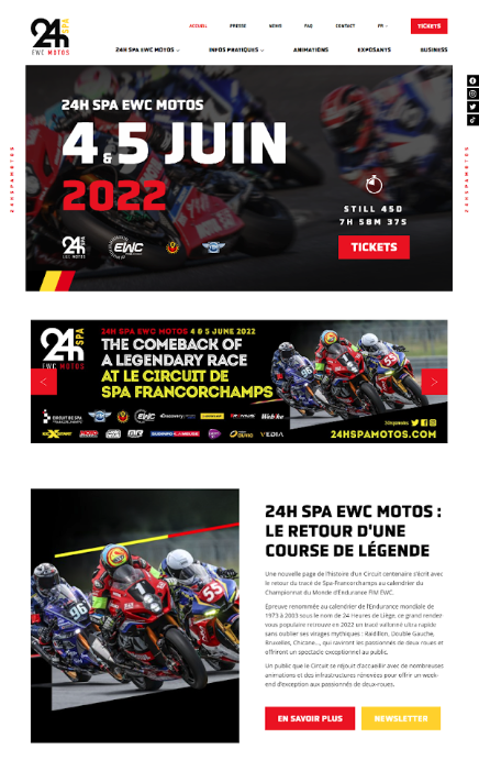 Pour l'événement des 24H Spa EWC Motos, le site de présentation de l'événement a été réalisé par Synchrone afin de pouvoir faire la promotion de la course.