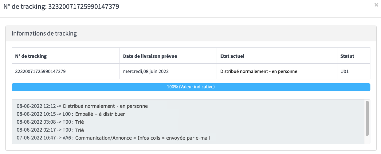 La vue "Informations de tracking" permet de visualiser toutes les étapes par lesquelles un colis est passé. Les étapes de tri différentes peuvent être au nombre de six maximum.