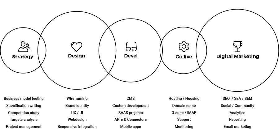 Depuis 2001, nos experts ont perfectionné leur méthodologie qui nous permet d'assurer la cohérence depuis la conception jusqu'à la réalisation et la promotion de votre projet digital.